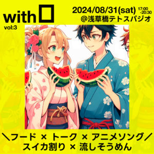 With Oとは 5年以上、計70回を超え開催していた前身「オタトーク会」の装いを新たにリスタートするパーティ! 「オタトーク会」のゆるーくみんなと楽しくアニメのトークやボドゲなどをして過ごしてきた雰囲気はそのままに、さらに音楽とフードも楽しめちゃう […]